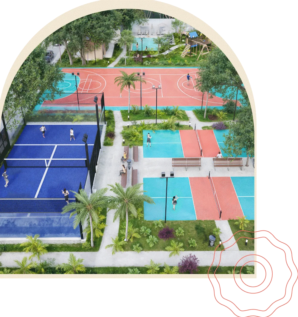 En Marina descubrirás 197 terrenos conectados por un sendero lineal donde encontrarás espacios diseñados para el entretenimiento, la relajación y la convivencia. Cada aspecto está enfocado en brindar comodidad y diversión. Tu familia podrá disfrutar de un ambiente que promueve el bienestar y la interacción social, en un entorno donde la arquitectura moderna se fusiona perfectamente con la naturaleza.