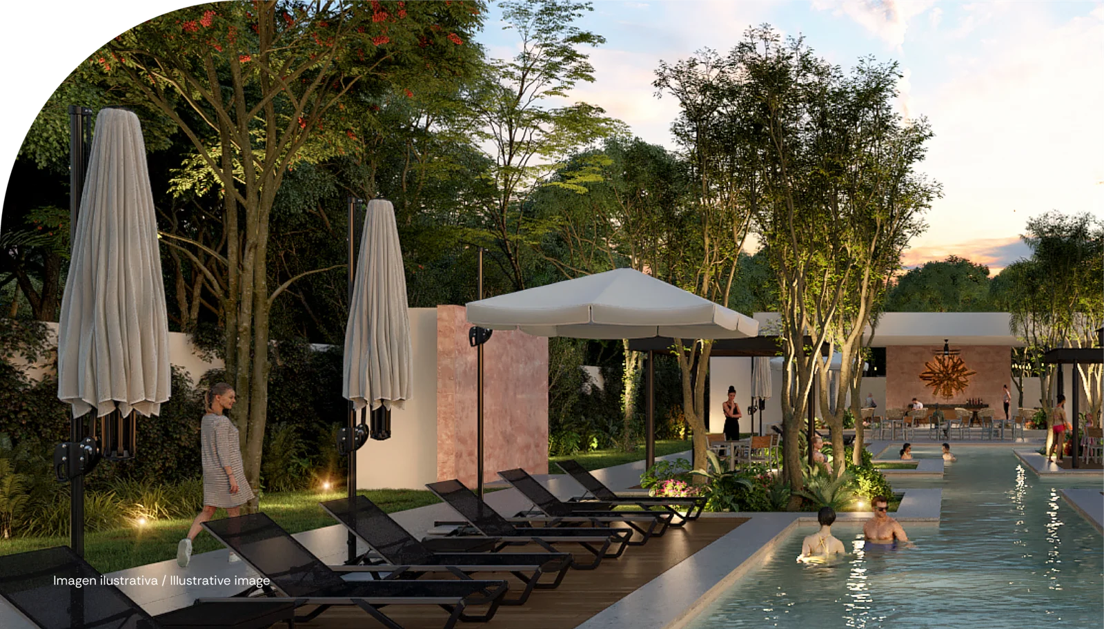 Cada espacio ha sido creado utilizando materiales de primera calidad y excelentes acabados, generando un ambiente elegante y confortable. Las áreas comunes cuentan las mejores comodidades que aseguran tu confort y seguridad, brindando una experiencia de vida incomparable en Playa del Carmen.